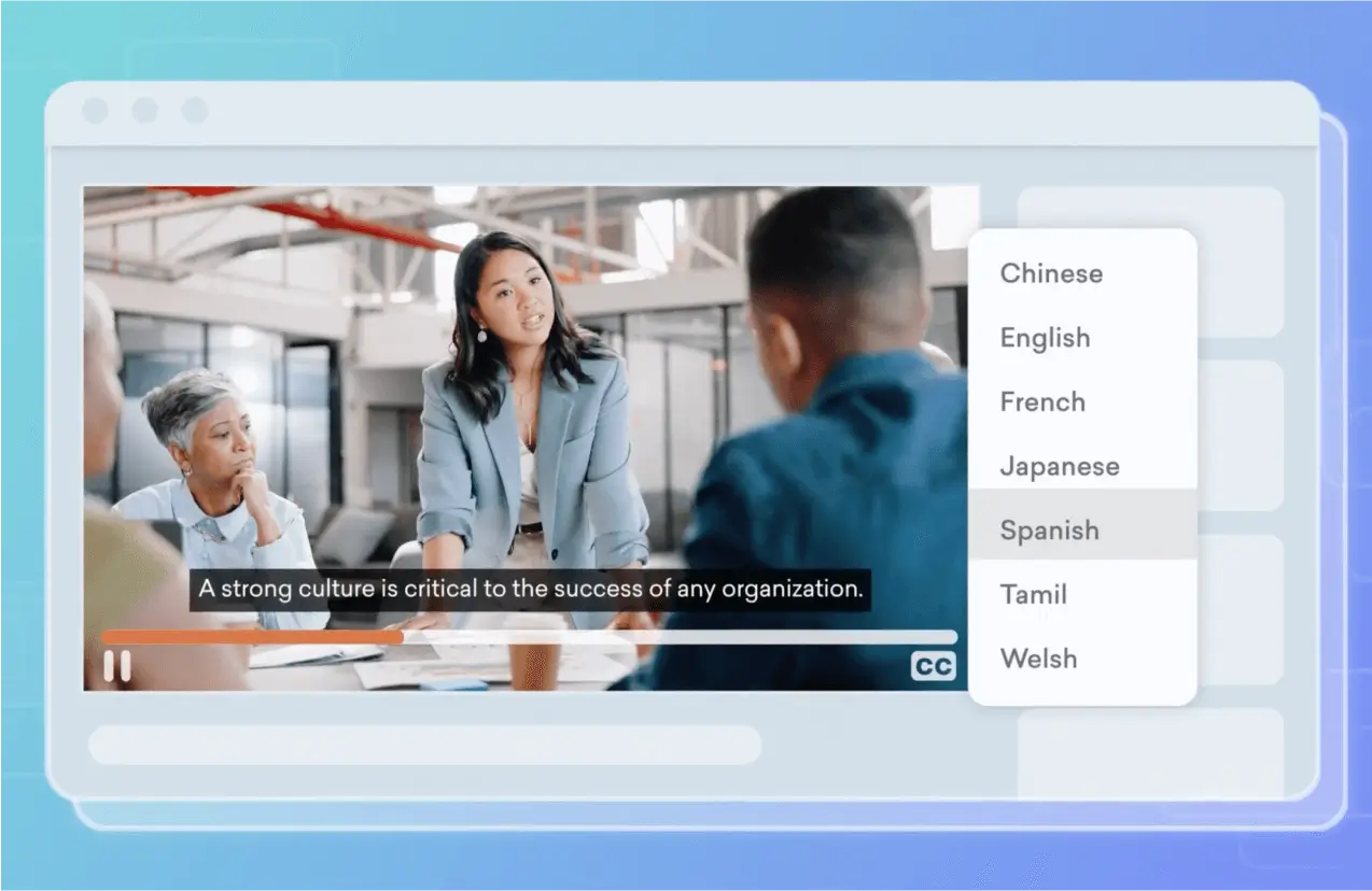 Vyond의 즉시 영상 번역 기능은 기존 영상을 다시 만들 필요 없이 언어만 바꿔 새로운 영상으로 자동 변환해줍니다. 스크립트, 음성, 자막까지 AI가 한 번에 번역해 다국어 영상 콘텐츠를 빠르게 완성할 수 있습니다. 촬영도, 재편집도 필요 없습니다. 한 번 만든 영상으로 더 많은 사람에게 전달하세요.